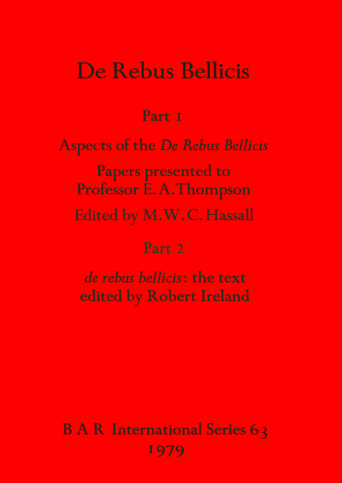 Part I: Aspects of the De Rebus Bellicis: Papers presented to Professor E. A. Thompson. Part 2: de rebus bellicis: the text