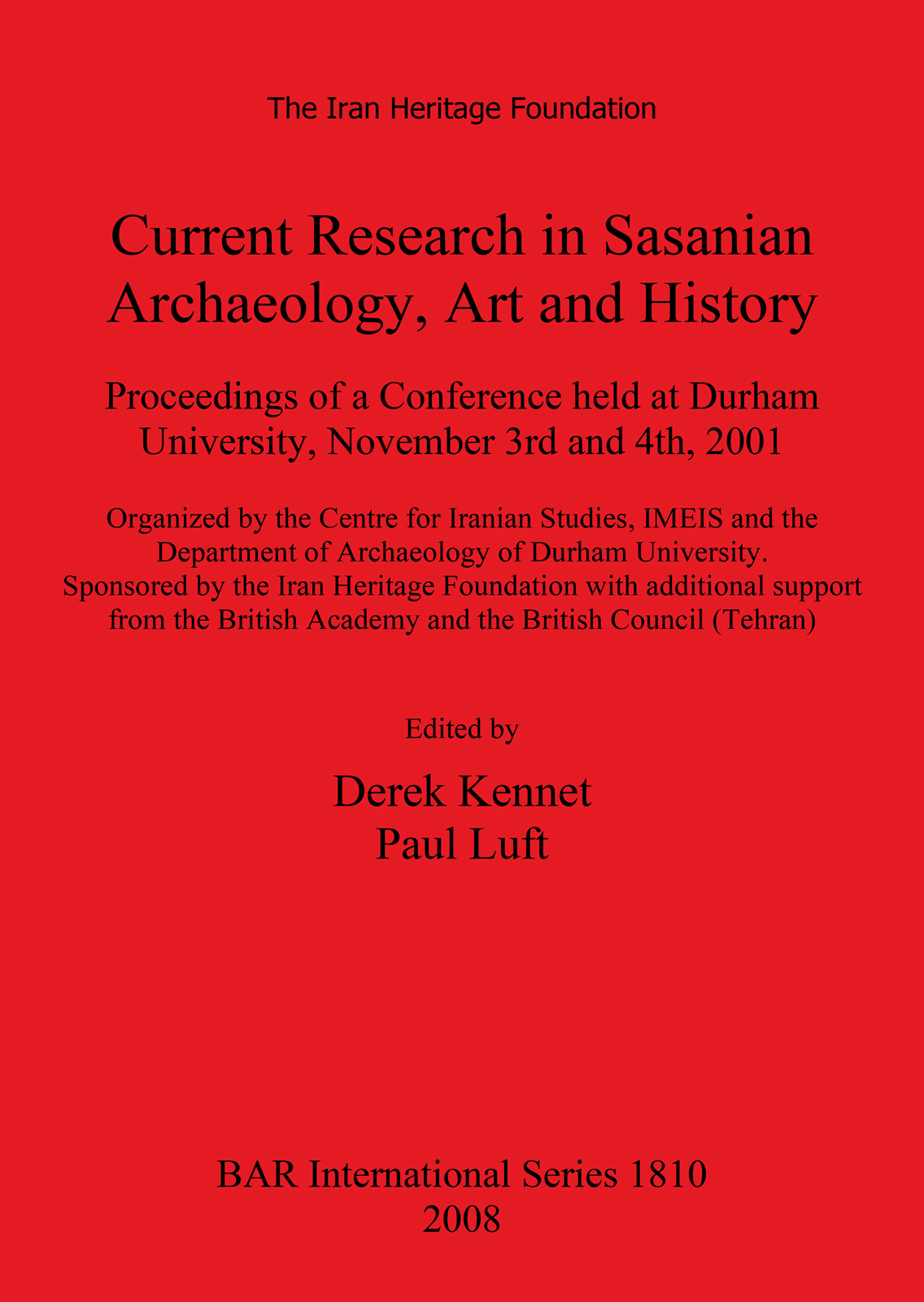 Proceedings of a Conference held at Durham University, November 3rd and 4th, 2001. Organized by the Centre for Iranian Studies, IMEIS and the Department of Archaeology of Durham University. Sponsored
