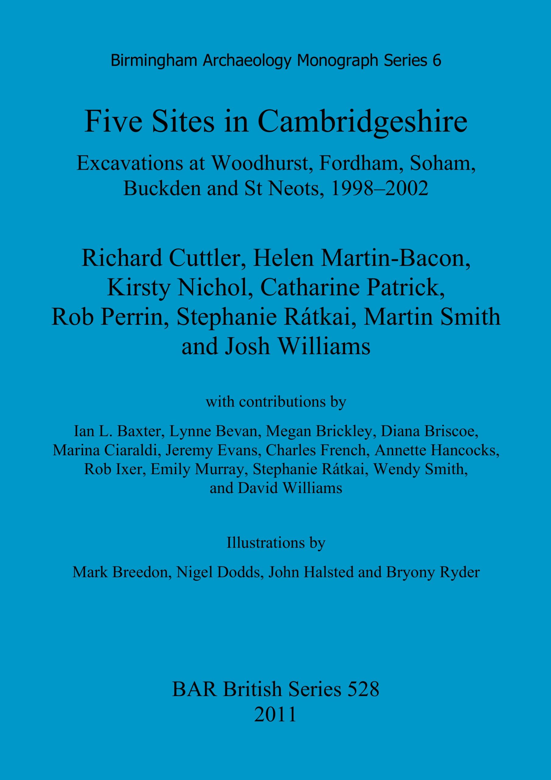 The results of five excavations carried out in Cambridgeshire between 1998 and 2002 by Birmingham University Archaeological Field Unit (BUFAU) – currently known as Birmingham Archaeology (BA). The respective sites are distributed fairly evenly acrossthecounty and run in a broad west to northeast direction that roughly centres upon Cambridge. The sites investigated are all within small towns or villages that have been the site of continuous settlement since at least medieval times. Consequently,the excavations proved very productive, revealing evidence for a wide range of activities and sometimes considerable spans of occupation. At Woodhurst, a Romano-British settlement was later succeeded by Saxon and then medieval occupation of the samearea. Fordham provided a detailed insight into changing patterns of activity in a single location during the Anglo-Saxon period. Investigations at Buckden produced a less wide-ranging but nonetheless significant view of economic activities during medieval times. Finally, the excavations at Soham and St Neots revealed sequences running respectively from the Late Saxon and medieval periods through until modern times. In addition, all five sites produced small-scale evidence for prehistoric activity which combine to form a small but useful contribution to existing knowledge of prehistoric occupation in the region.