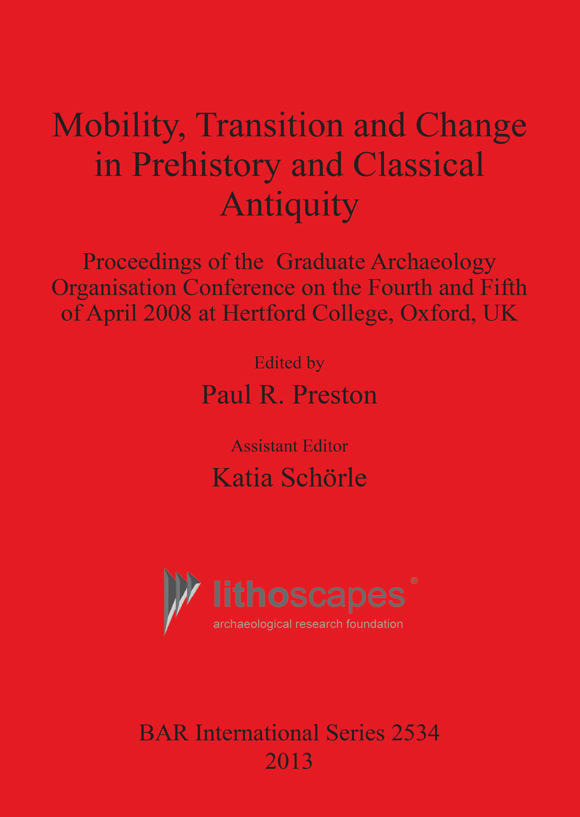 This volume stems from the proceedings of the third conference of the Graduate Archaeology Organisation at Oxford (GAO) held 4-5 April, 2008 at Hertford College, Oxford. The conference title was Challenging Frontiers: Mobility, Transition and Change, and aimed to address the question of mobility in the archaeological record from an inter-disciplinary perspective, and hence to encourage dialogue between the more artistic and scientific subdisciplines of archaeology.