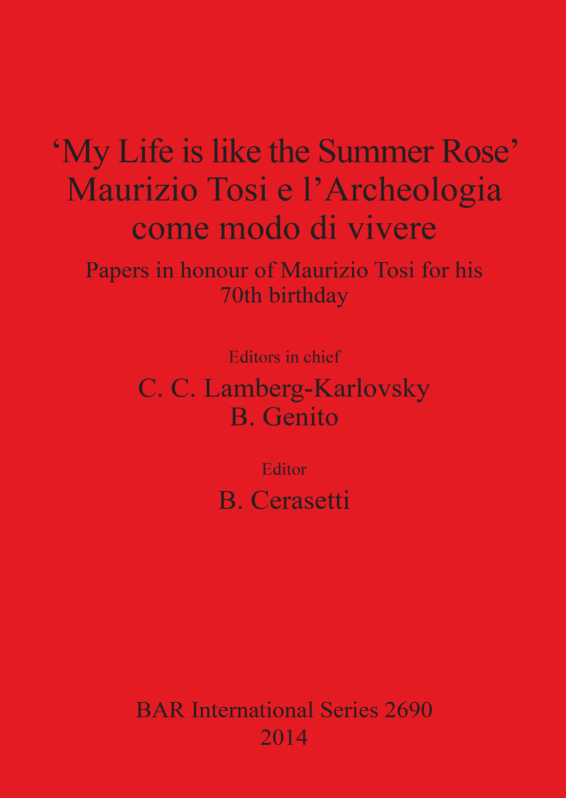 Edited by Editors in chief C.C. Lamberg-Karlovsky and B. Genito, Editor B. Cerasetti