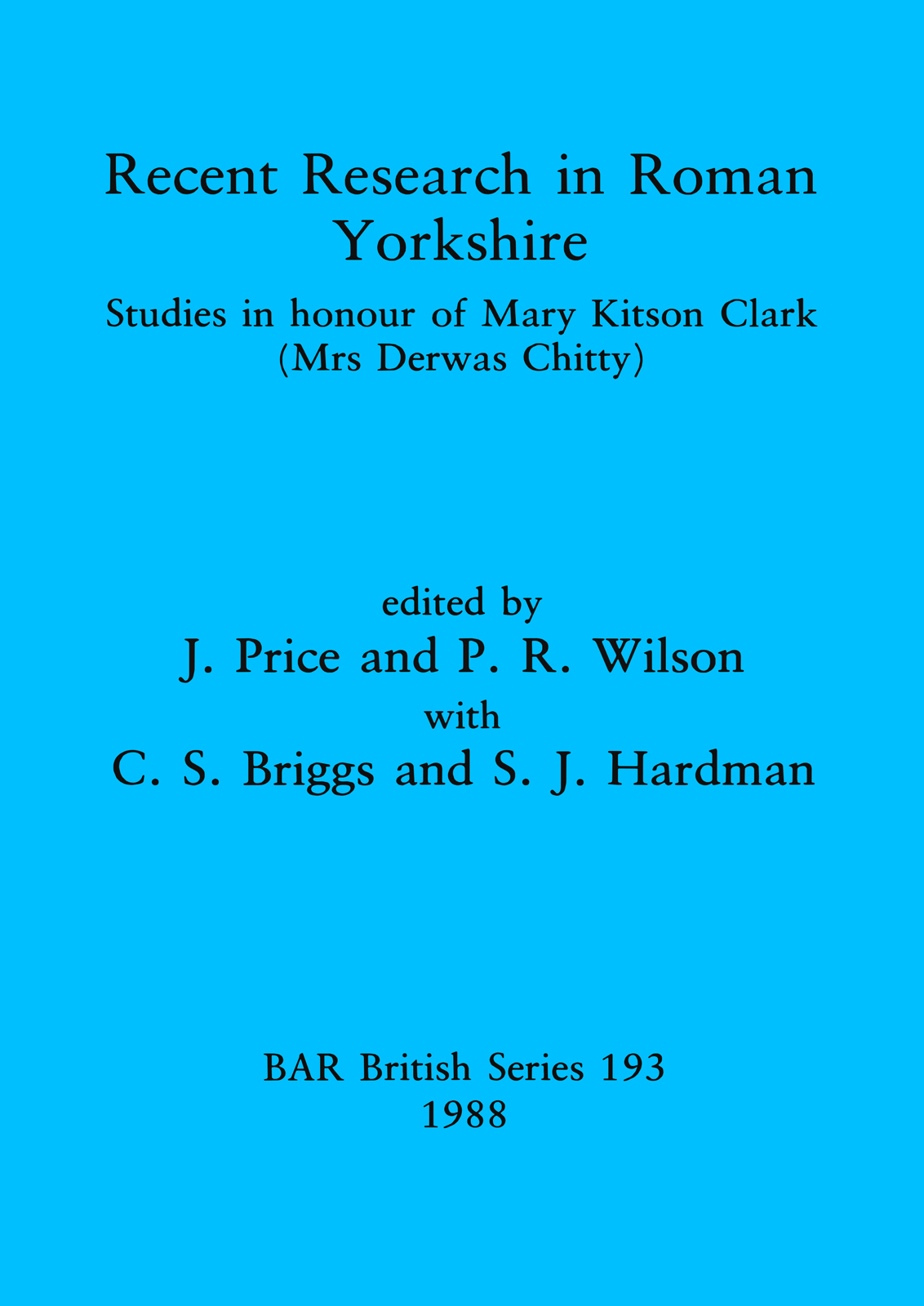 Edited by J. Price and P. R. Wilson with C. S. Briggs and S. J. Hardman