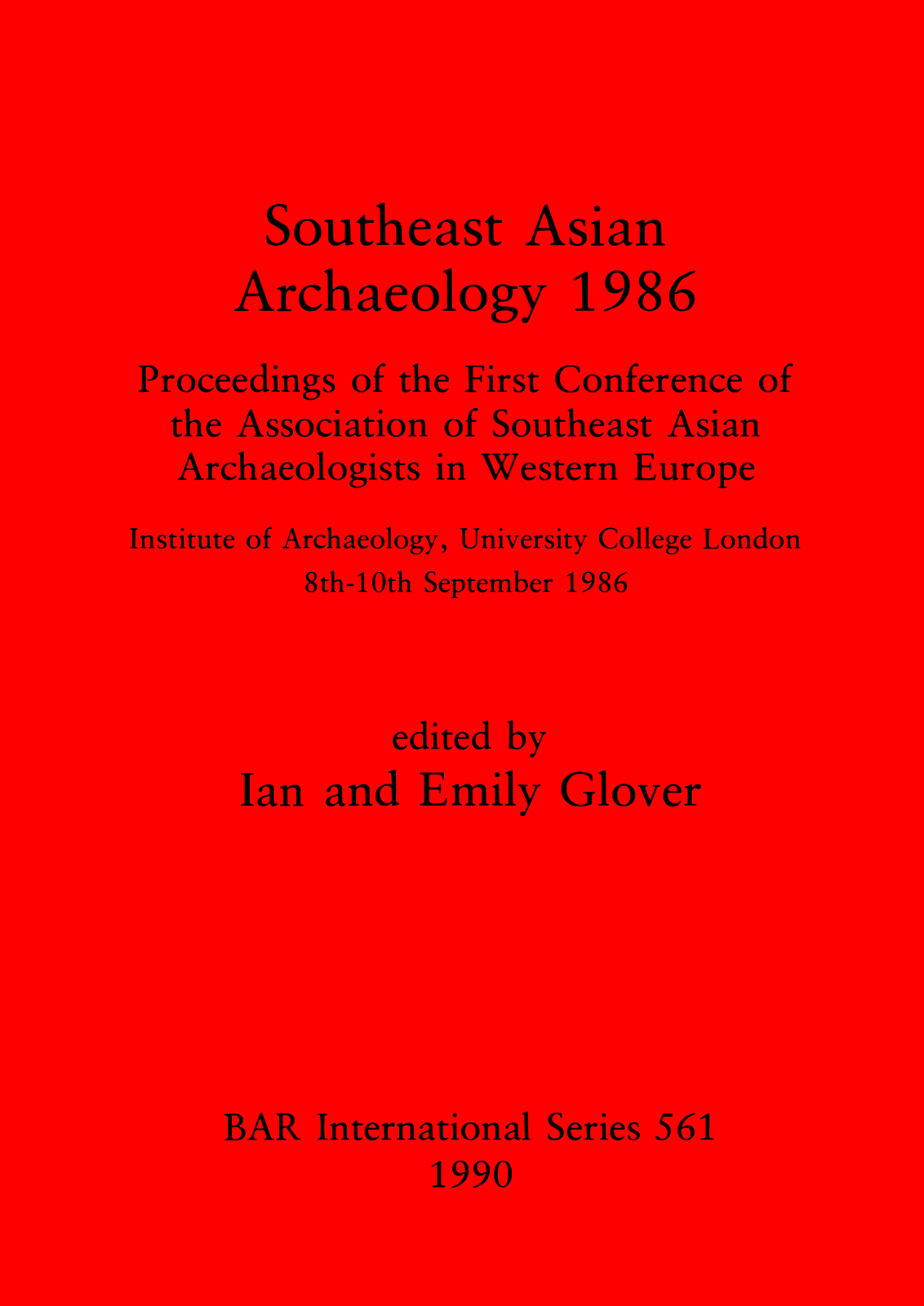 Proceedings of the First Conference of the Association of Southeast Asian Archaeologists in Western Europe: Institute of Archaeology, University College London, 8th – 10th September 1986