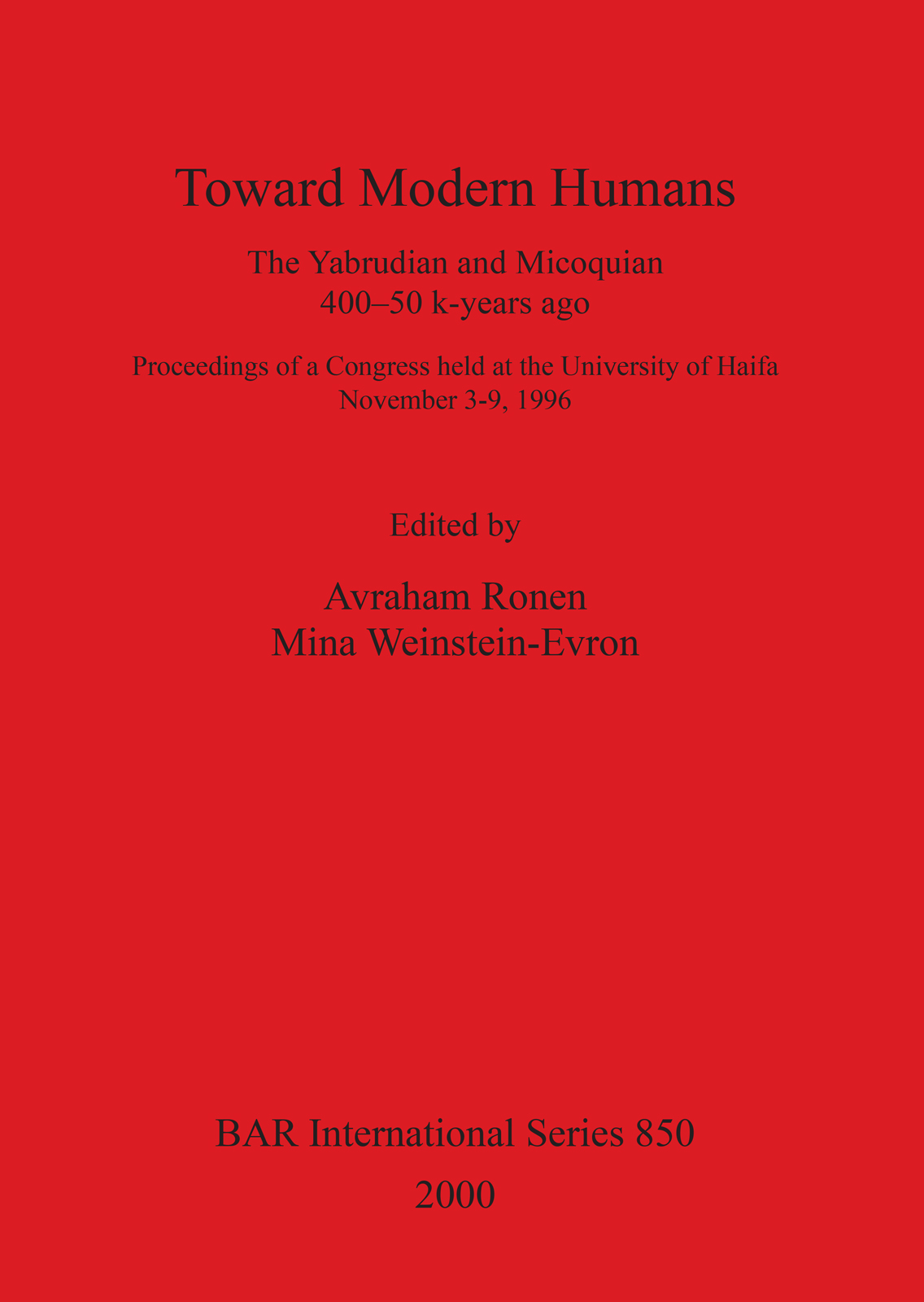 The Yabrudian and Micoquian 400-50 k-years ago. Proceedings of a Congress held at the University of Haifa November 3-9, 1996