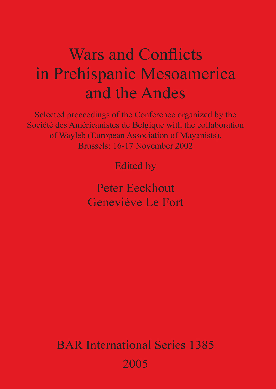 Selected proceedings of the Conference organized by the Société des Américanistes de Belgique with the collaboration of Wayleb (European Association of Mayanists), Brussels: 16-17 November 2002